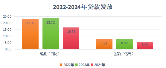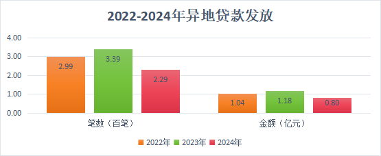 2024年,发放异地贷款229笔7990.60万元,分别同比下降32.45%、32.11%。2024年末,累计发放异地贷款6377笔,总额179011.00万元,异地贷款余额94467.51万元,分别比上年末增长3.72%、4.67%、6.23%。