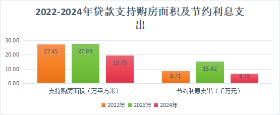 1.个人住房贷款:2024年,支持职工购建房19.75万平方米(含公转商贴息贷款),年末个人住房贷款市场占有率(含公转商贴息贷款)为24.82%,比上年末下降1.02个百分点。通过申请住房公积金个人住房贷款,可节约职工购房利息支出6734.70万元。