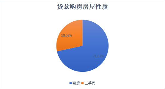 贷款以新房为主。购买新房占71.62%,购买二手房占28.38%。