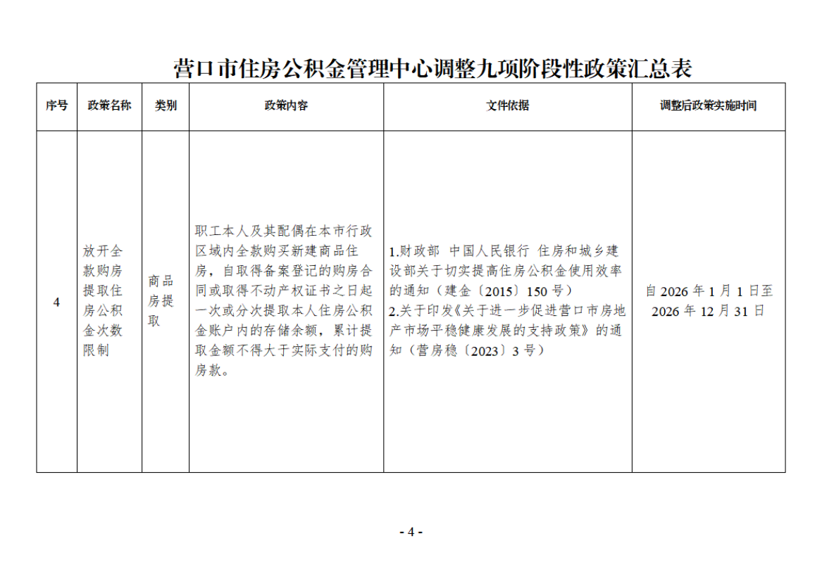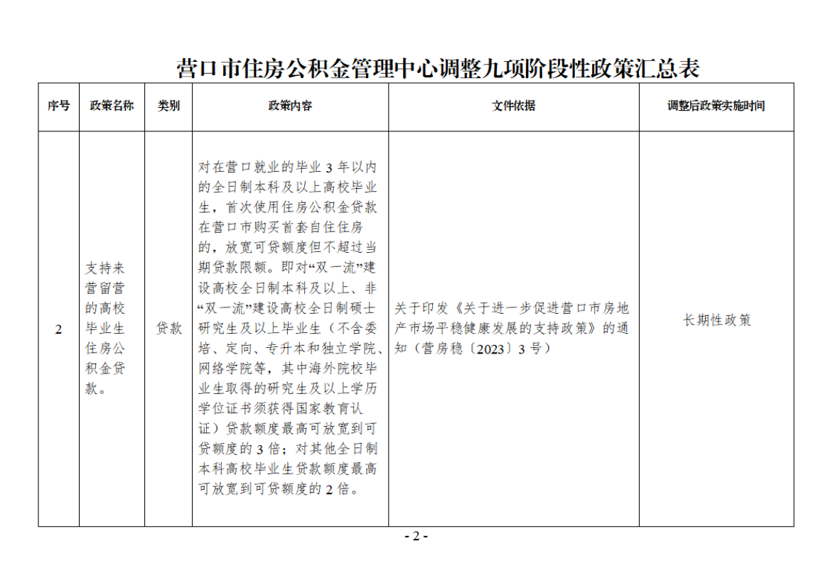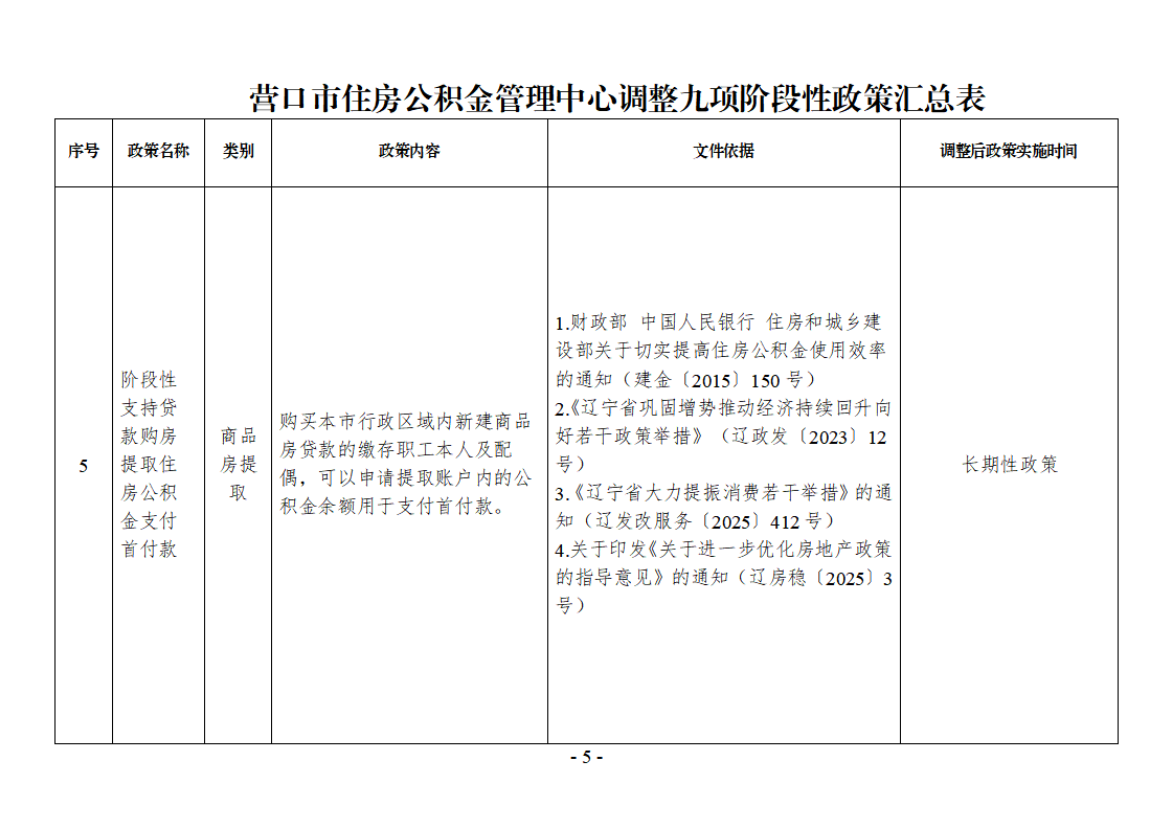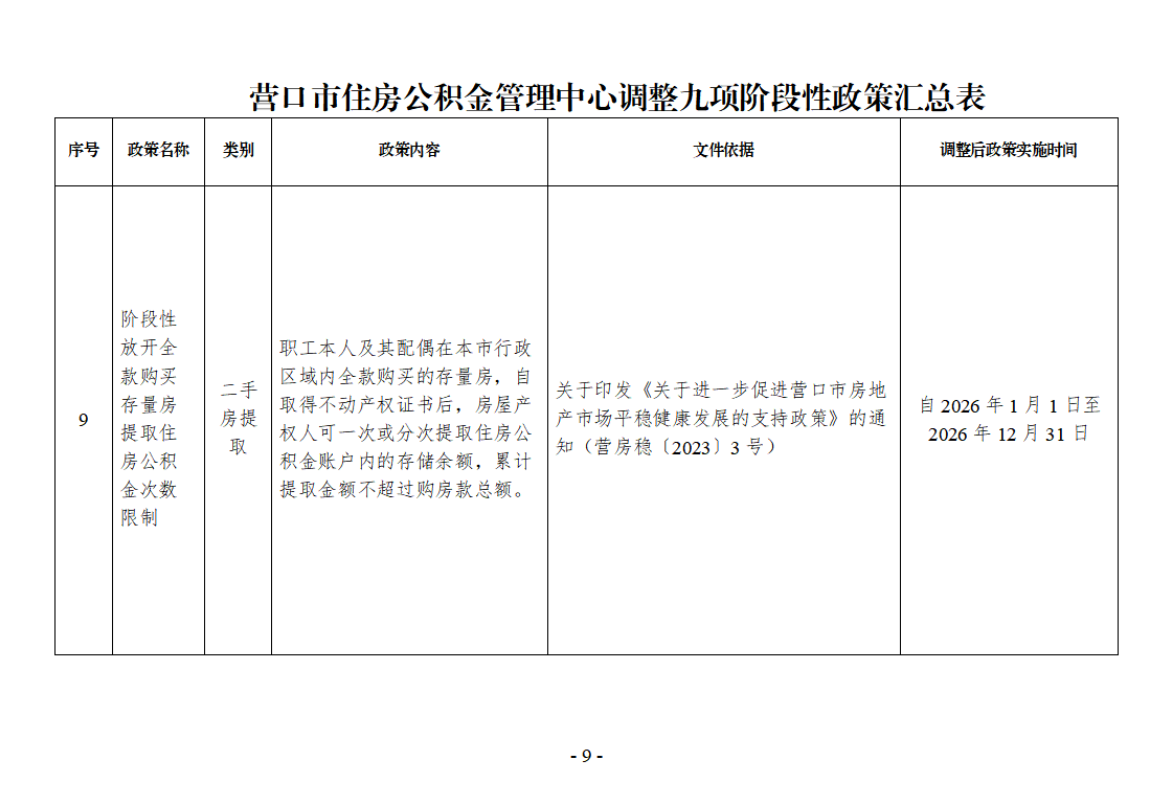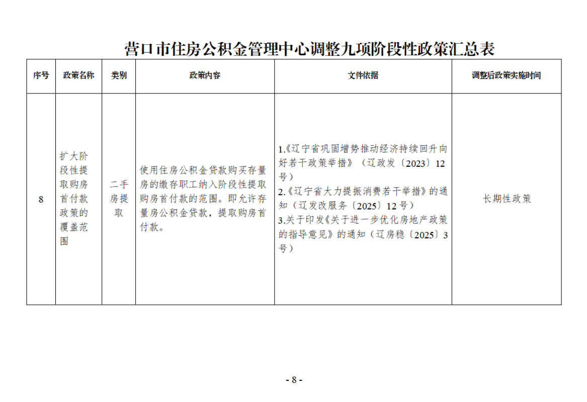 营公积金发〔2025〕8号 附件:营口市住房公积金管理中心调整九项阶段性政策汇总表