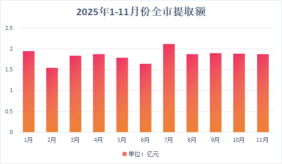 1、2025年11月份全市提取住房公积金1.87亿元,同比下降5.25%。