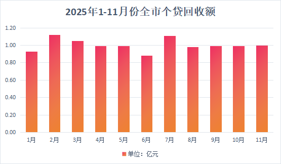 1、2025年11月份全市住房公积金贷款回收额1.00亿元,同比增长3.77%。