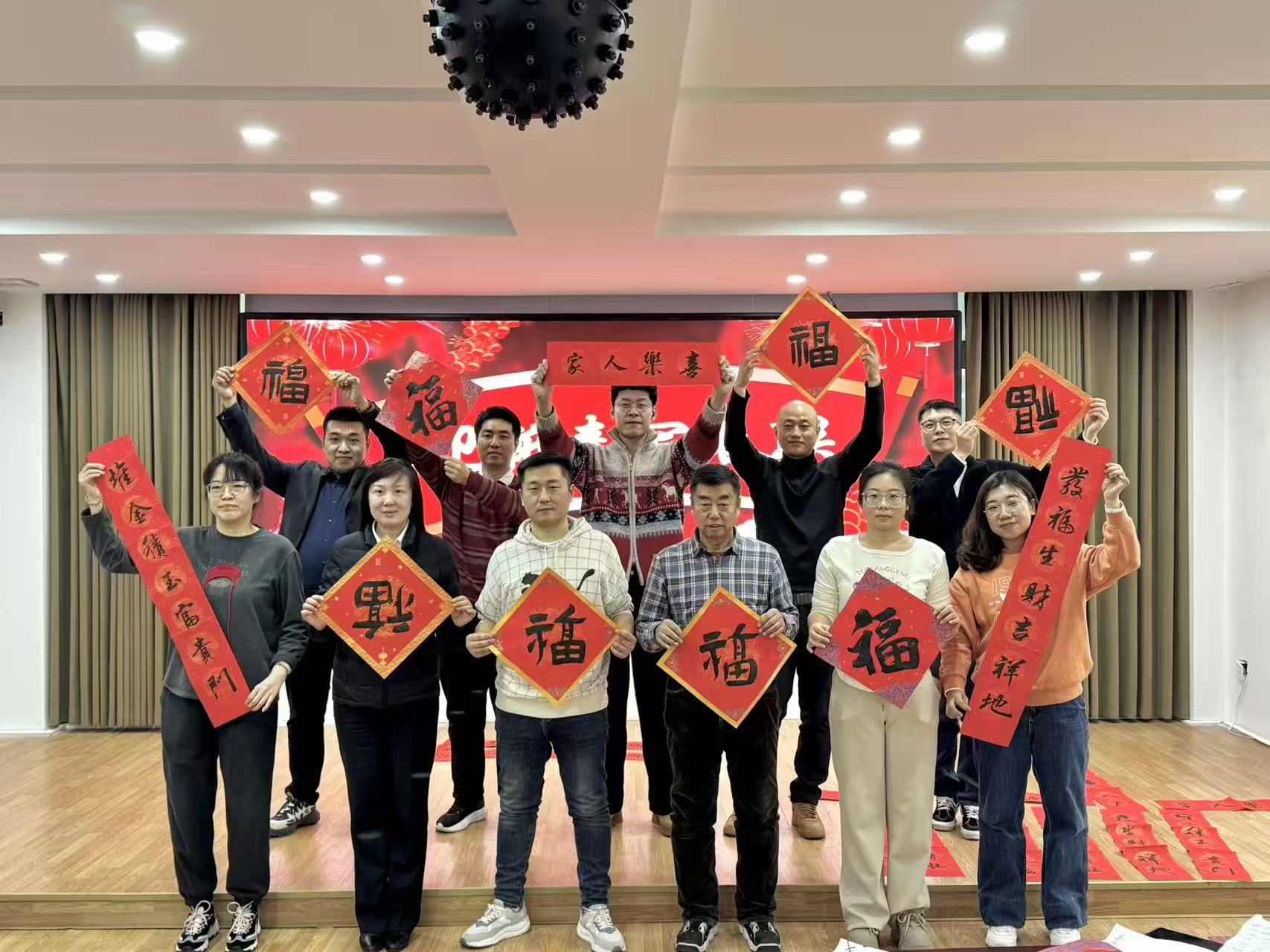 活动现场红纸铺展,墨香四溢,红彤彤的宣纸整齐铺展,处处洋溢着喜庆的节日气息。单群先生与其弟子凝神挥毫,将新春祝福融合于笔墨之间,一幅幅寓意吉祥的春联、一个个饱满有力的“福”字接连落成,中心职工脸上洋溢着喜悦的笑容,纷纷驻足观赏,踊跃挑选。