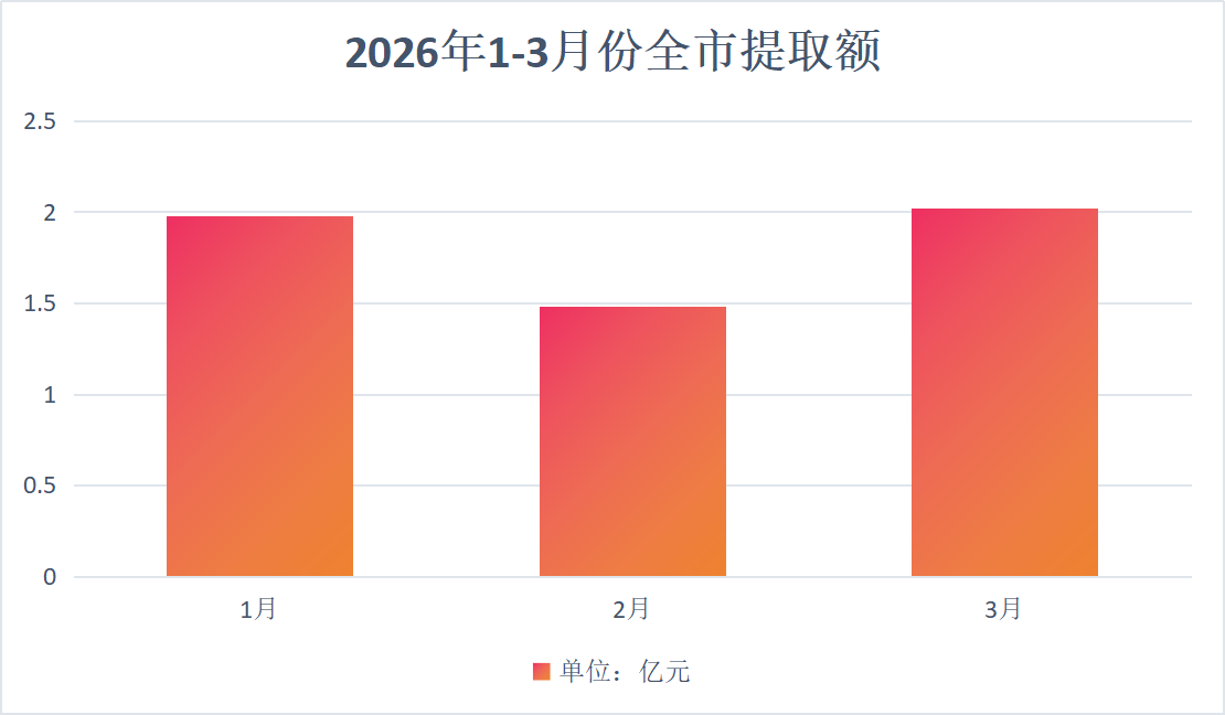 2、2026年1-3月份全市共提取住房公积金5.47亿元,同比增长4.22%,累计提取206.38亿元。