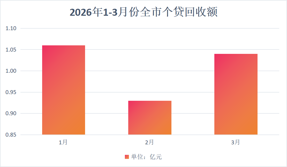1、2026年3月份全市住房公积金贷款回收额1.04亿元,同比下降0.86%。